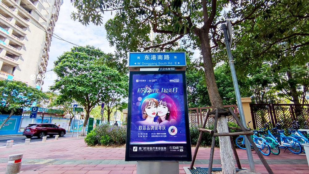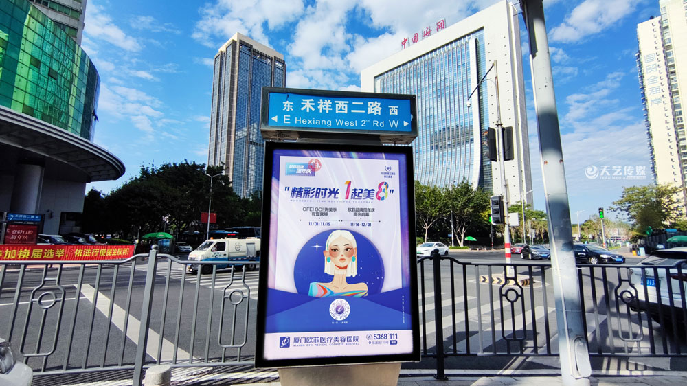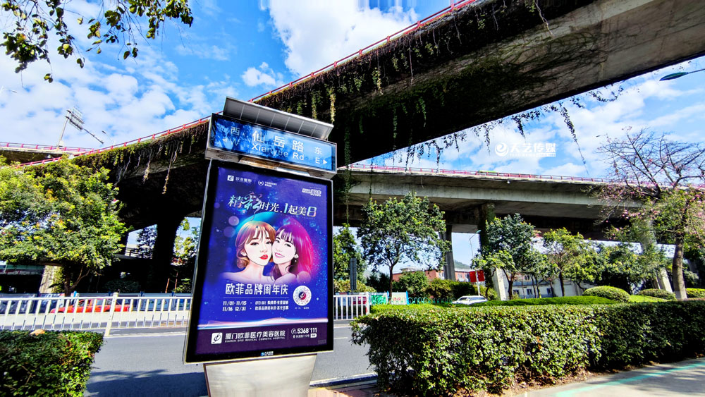 值此歐菲品牌周年慶之際,歐菲品牌在廈門島內各個黃金路段(仙岳路、嘉禾路、湖濱南路、鷺江道、環(huán)島干道、東渡路等)投放超過400座城市路名牌和200座社區(qū)快遞柜媒體(集中在中高端人群住宅區(qū)、居住率較為密集的生活居住區(qū))。