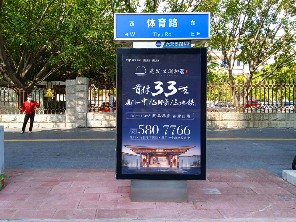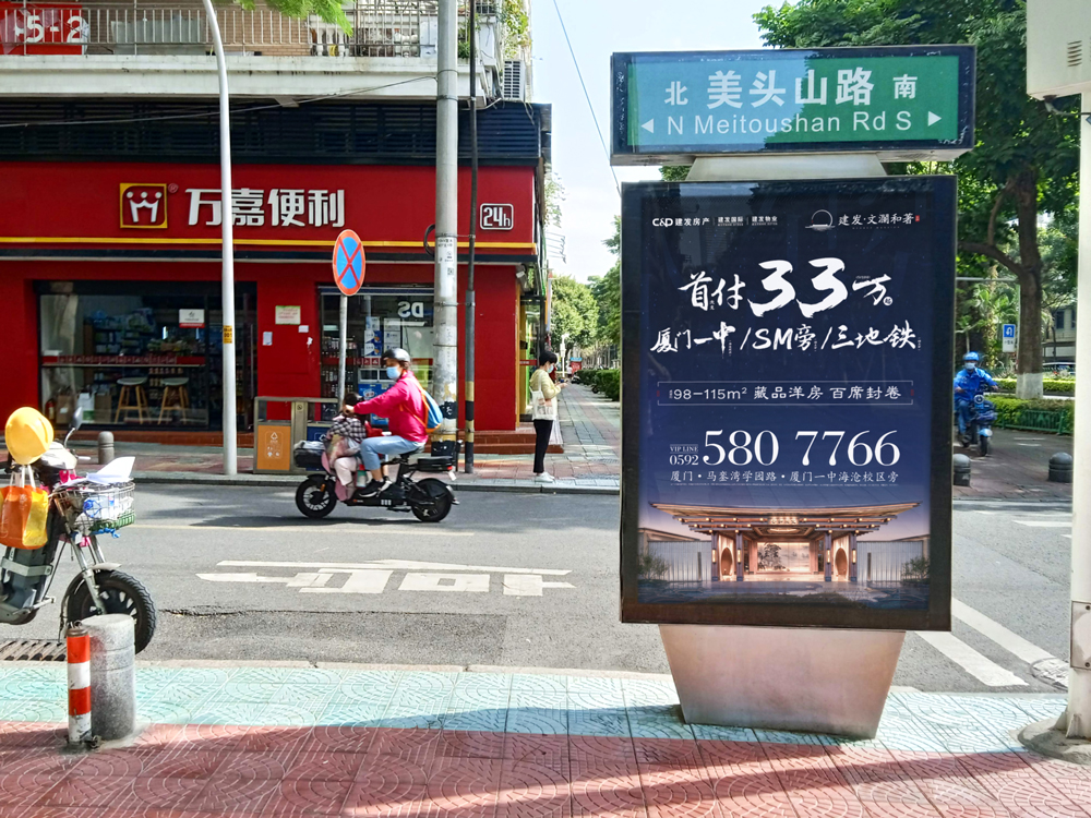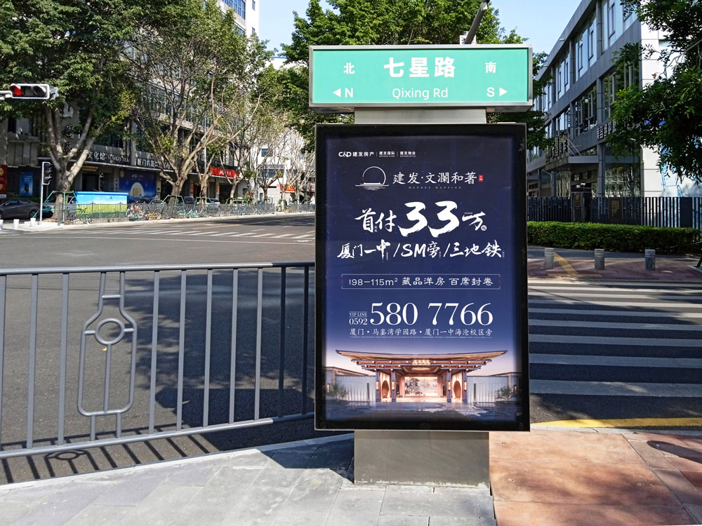 本次建發(fā)文瀾和著二期樓盤再次與天藝傳媒攜手,共同續(xù)寫輝煌。建發(fā)文瀾和著二期開盤,再次選擇投放戶外城市路名牌超過100座,且均在島內(nèi)黃金點位覆蓋,包括主干道,如:廈禾路、體育路、金尚路、湖濱中路、禾祥西路、禾祥東路等車流人流密集路段,以及商超圈周邊路段,如:火車站羅賓森、思北路口、輪渡周邊。