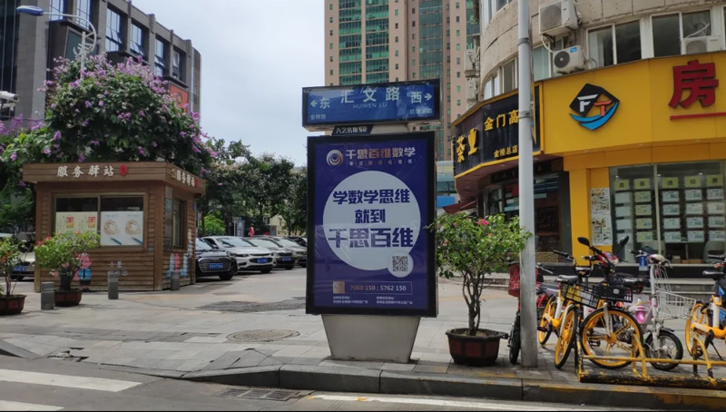 廈門千思百維教育聯(lián)袂天藝傳媒公司在廈門市各大重點路段針對性投放路名牌廣告。